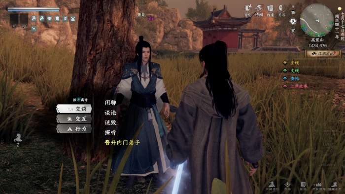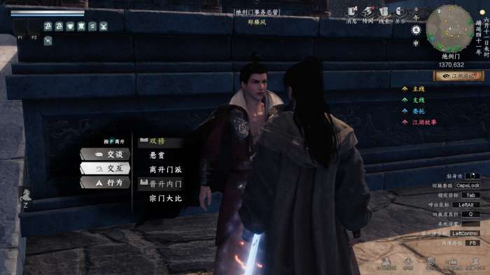 出现江湖故事:端倪初现,跟随指引完成任务后即可晋升内门弟子