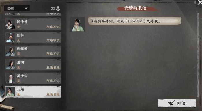 做悬赏任务将门派好感提升到50时收到云婧飞鸽