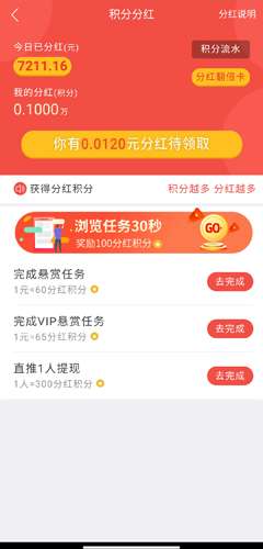 2、在分红页面中有不少的悬赏任务,完成之后就可以获得积分,还能进行兑换;