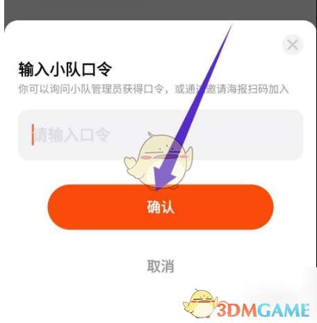 4、输入小队口令,点击确认。