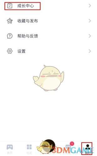 1、在我的页面中点击成长中心按钮;