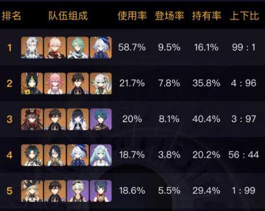 需要说明的是,角色使用率主要是为了方便玩家参考,帮助玩家做出更合理的配队选择,而不是为了拉踩角色。