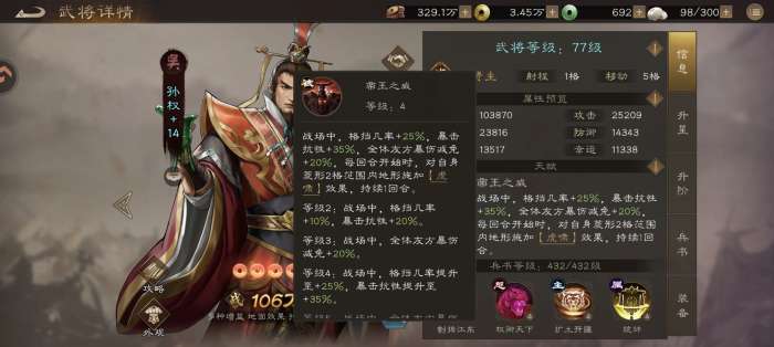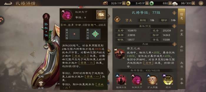 未来可期:孙权的设计完美契合阵地战体系,待未来更多吴国特色武将实装后,其强度有望获得质的飞跃。