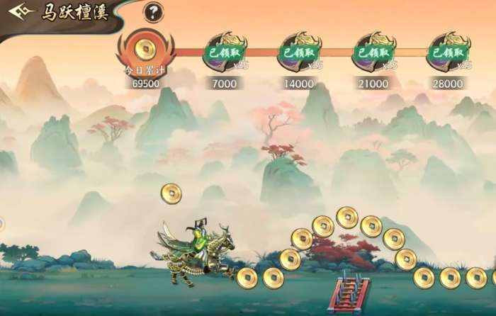 除了战斗方面的副本外,百战群英也开放了一些休闲玩法的副本,它们都是一些趣味性较强的小游戏,目前一共有四个,分别为草船借箭、许田围猎、犒赏三军和马跃檀溪。其中,草船借箭为躲避玩法,许田围猎是捕猎玩法,犒赏三军则需要玩家控制武将的吃饭节奏,马跃檀溪在形式上更类似跑酷,玩家只需操控武将越过障碍并完成铜币的收集即可。游玩它们可令玩家积累荣耀货币,该货币能在荣耀商铺里兑换所需的道具和资源。