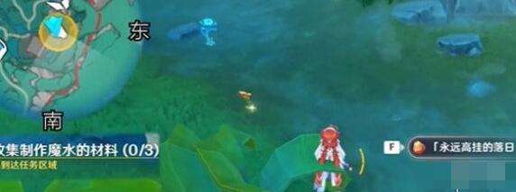6、还有一个材料要我们往东边的位置走,拉掉水流尽头发现这个夜晚显现的明月这个最后一个材料。