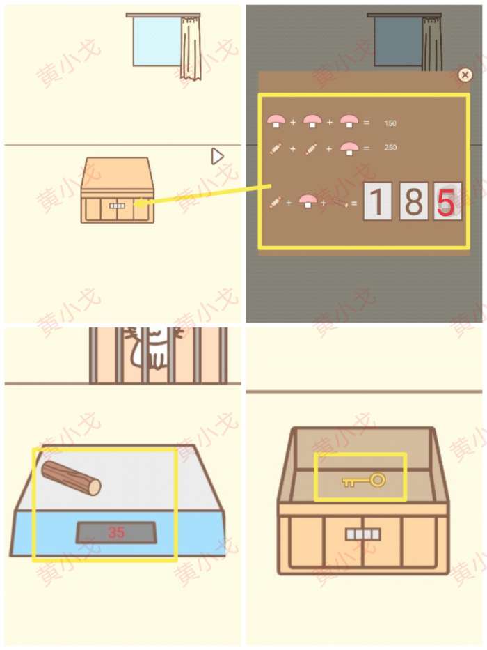 3-3.糖果➕蘑菇➕木柴=100+50+35=185);打开箱子,获得【钥匙】
