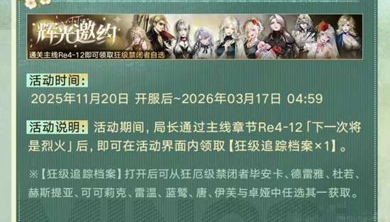 本次11月20号的更新过后,主线打过第四章的局长都可以领到这次的自选狂,范围分别是: