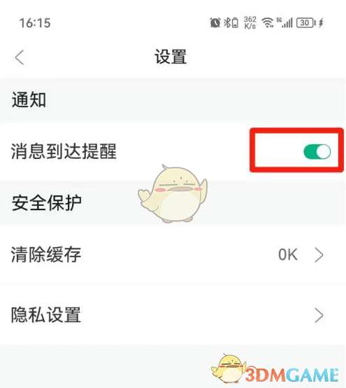 3、关掉【消息到达提醒】后的绿色开关就可以了