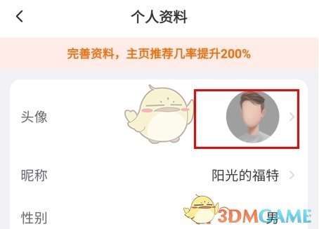 3、在个人资料页面中点击头像按钮就可以直接从相册中选择更换了。