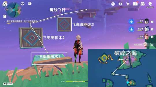按图中指引路线走,利用“飞高高积木”,前往破碎之海