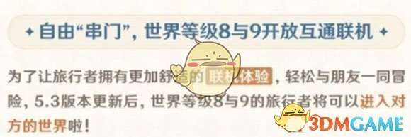 1、在5.3版本更新之后,世界等级9级的玩家就可以与8级的一起玩了。