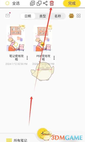 3、弹出页面后选择笔记点击删除的按钮就可以了。