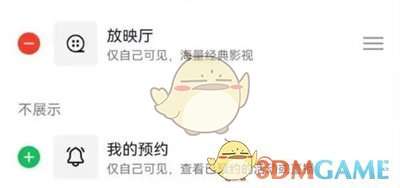 4、删除过后在下面“不展示”列表里会出现有“我的预约”,代表在抖音主页里不会显示出这个服务模块,在右上方点击“保存”退出即可。