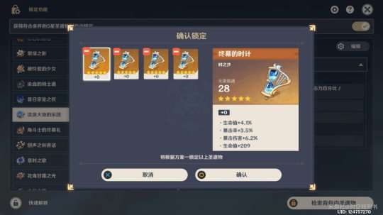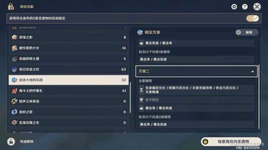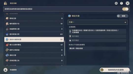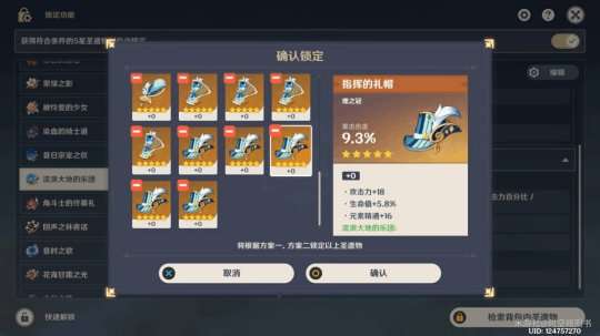 自检后:我们发现符合相应条件的圣遗物都出来了。但是只有选取主词条的部位出现