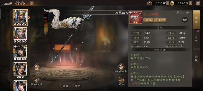 条件1:公孙瓒有一个0阶神兵,这样第二回合可以释放大招(这个我是随机的,大佬应该都有吧?)