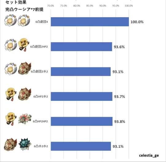 剧团四件套拥有绝对的碾压性优势,与其余搭配伤害预期基本要相差15%~13%。