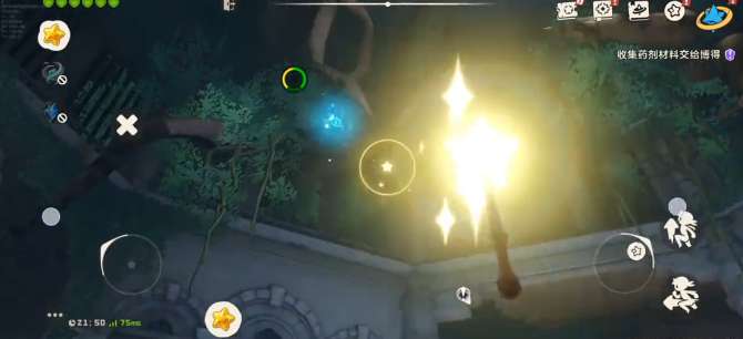 打开游戏地图,找到望海崖壁的对应位置,进入到副本之后,不需要绕路。一直朝着正前方走即可,在行进的过程中就会遇到一个黑衣人NPC,这就是副本的第1个关键节点。需要和他对话,然后触发挑战,完成对战之后,原本紧闭的门就会开启,这就是进入下一个区域的大前提。在门打开之后,不要着急前进,这里就会有一个容易忽略的小细节,抬头往上看就可以看到一个星星,这就是需要互动的道具。不过点击星星的时候就要注意操作的角度,避开画面中的树枝。