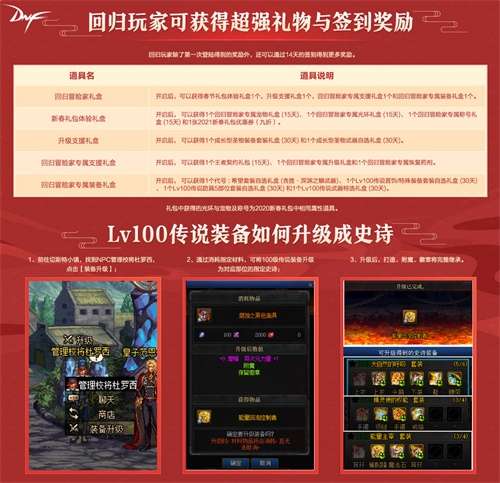 作为此次新春版本的重头戏,“喜迎冒险家回归”活动备受关注。活动期间,回归用勇士不但可以获得专用BUFF,还可以在回归首次上线后获得“回归冒险家礼盒”,更有额外的14日签到奖励可以领取!通过登录以及签到的方式,回归勇士不但可以获得包括Lv100传说装备在内的各色道具,还可以将其升级为对应部位的指定史诗装备,快速跟上版本节奏。