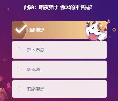 问题:暗夜猎手薇恩的本名是? 答案:肖娜·薇恩