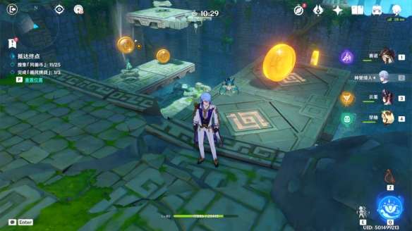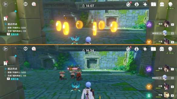 击败此处的丘丘人会出现六枚风寻币,如果不捡的话,最后无法完成第二个奖励条件。