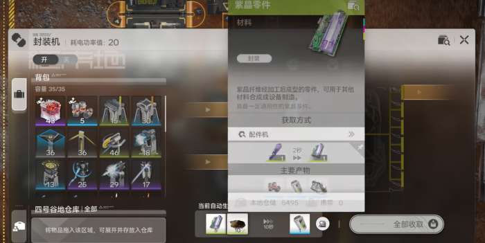 典型瓶颈场景:低熔电池合成需消耗5个紫金零件与10个原始粉末。按比例折算,每分钟需供应30个紫金零件与60个原始粉末才能支撑6个电池产出。若仅部署1条原始粉末产线(假设其理论产能为30个/分钟),则粉末供给缺口达50%,导致合成设施频繁空转,当前生产值将显著低于理论值。此时界面显示的“当前生产=3”即为系统在材料短缺状态下动态降频的实际结果。