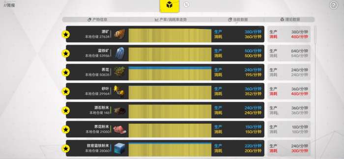 另一类常见偏差表现为“理论消耗>当前消耗”。此情况指向下游环节未充分消化上游产出,可能原因包括:下游产线数量不足、下游产线自身原料短缺(如高能电容产线缺少低熔电池)、或下游存储空间已达上限。此时应逆向追溯,定位具体阻塞节点——例如检查高能电容产线的输入槽位是否持续为空,进而判断是低熔电池供给不足,还是该产线未激活/未满配。
