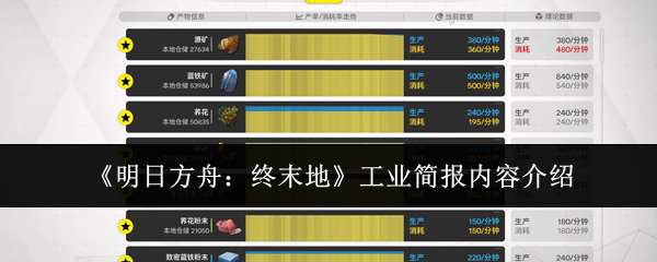 软件提交 专题合集 热门手游明日方舟终末地工业简报内容有什么?在明日方舟终末地基建系统中,工业简报是评估产线运行状态的核心面板。许多玩家搭建完低熔电池、高能电容等关键产线后,发现“当前生产”数值长期低于“理论生产”,误以为设施故障或配置错误,反复拆建反而加剧资源浪费。事实上,这一现象并非异常,而是工业系统资源流匹配逻辑的直观体现。本文将从底层机制出发,系统解析两组数据的定义、偏差成因及可落地的优化路径。