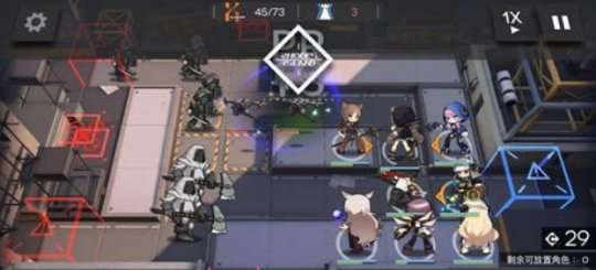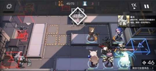 在这个关卡的前期非常关键,我们需要在门口放置一个能够抗住敌人并且能够回复费用的先锋单位,同时在旁边放置一个狙击单位来协助分担部分压力。这里的先锋一定要足够强大才能够扛住怪物的攻击,且最好能够挡住两个格子的怪物,因为开局只有30点费用,我们不能在这个阶段放置太多干员。