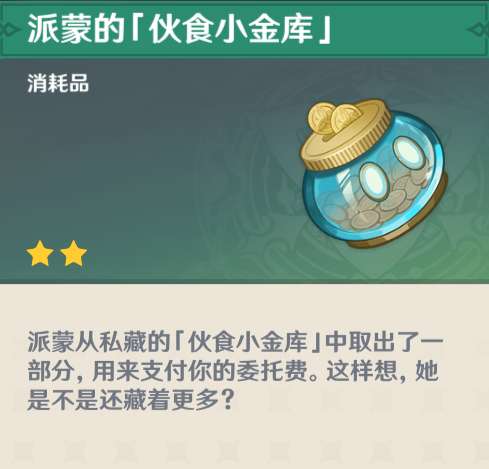 按流程完成任务后就能获得如下道具,和派蒙的小金库一样使用后就没了。