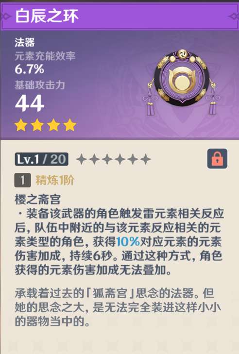 不过这把武器是少数的辅助性武器,也是唯一的能辅助元素伤害的四星武器,就是这个要求雷反应可能限制了很多队伍。