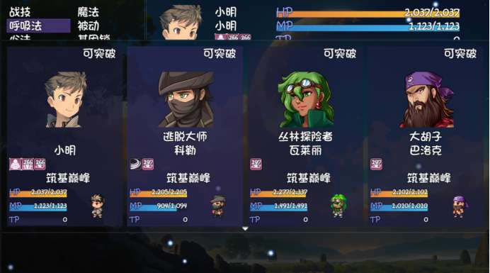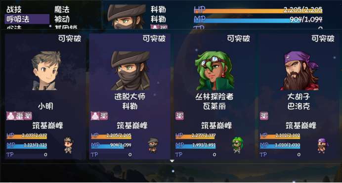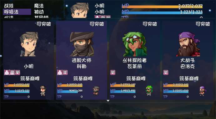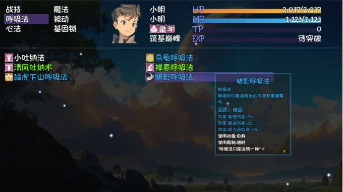 2.然后回退至选择技能界面(回退2下),然后QE切换人物,比如我现在按Q切换小明,使用他的呼吸法