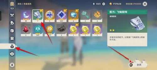 6、打开背包,点选“贵重道具”,点击选中飞蝇假饵图纸,点击“使用”即可学会制作飞蝇假饵鱼饵了。