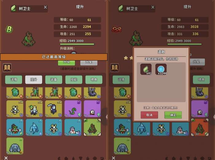 将B阶精灵从1级提升至60级,共需1828经验球,将其进阶至SSR后分解,可获得3244经验球,将经验球收益放大了1.77倍,可作为后期快速积累经验的办法