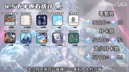 也就是说只有全家福玩家能够拿到36抽,但还要保证深渊打满。下半能够获取的原石数量比较少,还需要各位旅行者进行合理规划。