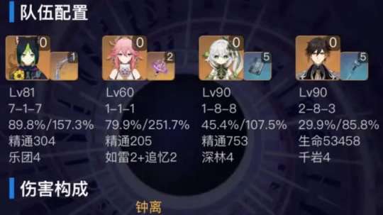 其次,我自身阵容是二命八重+二命小提,小提带的就是若水,结果这样的提八阵容被草行久夜打的体无完肤,无论是舒适度,对单还是对群皆是如此。而且草行久夜还少带了一个金,钟离能去二队。