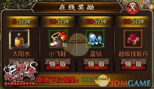2、在线奖励要及时领取。只有领取前一阶段的在线奖励,下一阶段的奖励才会开始计时。