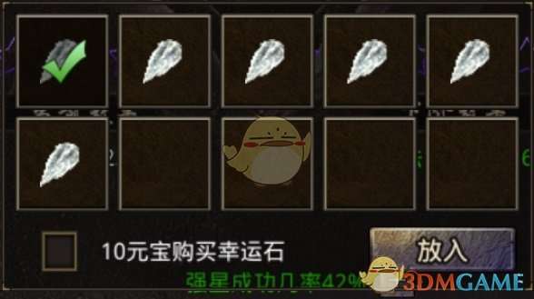 5、装备强化等级达到6级后,可以通过消耗幸运石增加强化成功率。每颗幸运石提升12%成功率。