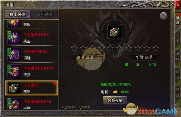 3、洗练仅能对火龙及以上品质装备进行,且需要消耗对应装备的洗练石和金币。