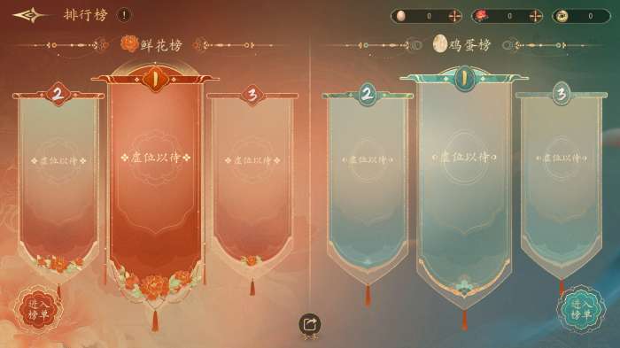随意挥洒你的鸡蛋和鲜花,为你心目中的角色打call/砸蛋,鸡蛋和鲜花的获取请看上面,可以进入榜单查看其他角色的投票情况,【分享】功能可以生成当前榜单情况与个人二维码截图方便分享。