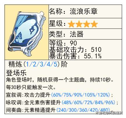当装备者进行普通攻击并带有元素攻击时,这件装备能够提高暴击率并触发一个特效。当使用普通攻击或战技时,其伤害输出将受到装备者精通程度的加成。虽然使用次数有限制,但其可用次数是足够的,可以不予考虑。