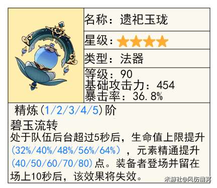 这个法器适合吃生命值的法师,并且专门打反应的速切角色,能用的角色目前比较少。