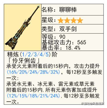 这把一般是给打反应伤害的角色使用的,配队最好是两个一样,两个不一样的组合,即可发挥作用,否则特效等于零。