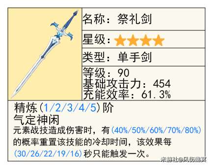 「祭礼系列」的大剑,很多后台角色可以用,更多充能,也可以很好配合「绝缘套」。
