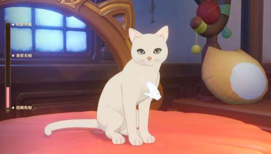 ③在完成「软绵绵喵屋」的布置后,可通过在猫碗里投喂食物来获得猫猫的认可。投喂猫猫后,可在「咪鸣鸣宝座」召来对应的猫猫,或者直接邀请猫猫与其玩耍。