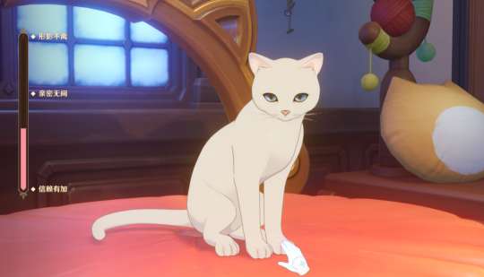 ①在「咪呜鸣宝座」选择猫猫,或者直接邀请猫猫并与其一同玩耍。猫猫的友好度分为信赖有加,亲密无间与形影不离三个状态阶段。