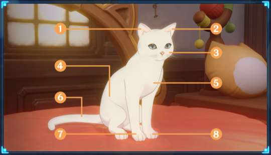 ⑤在猫猫的友好度状态阶段提升后,原先其不喜欢被触摸的部位可能会转变,允许旅行者抚摸。