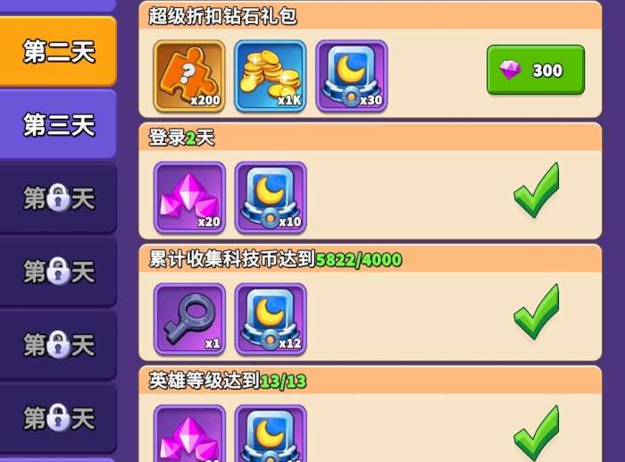 第一次7日钻石礼包基本全买,可获得2星火塔