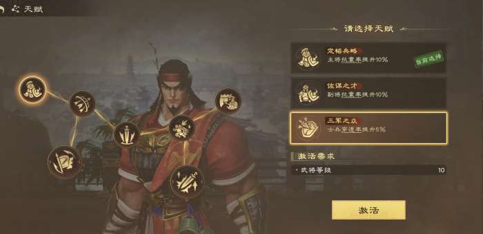 阵型方面,建议优先选择励军、倾覆和屯守,增加部队攻击力和倒戈率,和太史慈等角色配合效果更强。