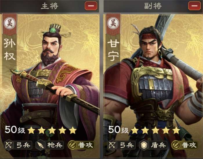 这支队伍爆发更高,孙权输出强劲,甘宁可提供额外的容错及多频的输出,可以快速削减敌方兵力,从而降低己方队伍战损。