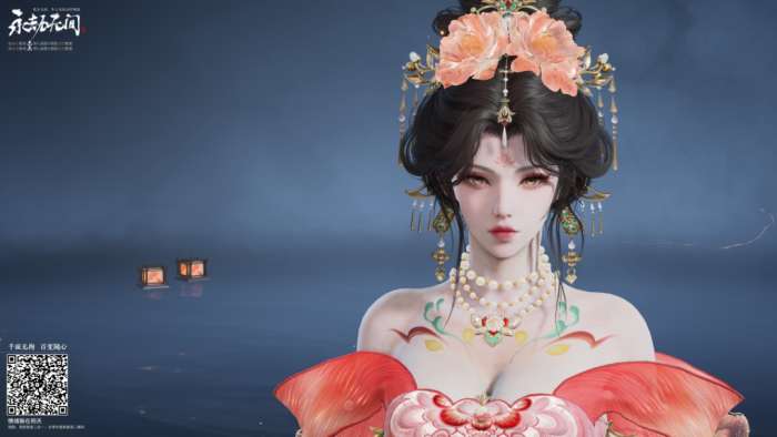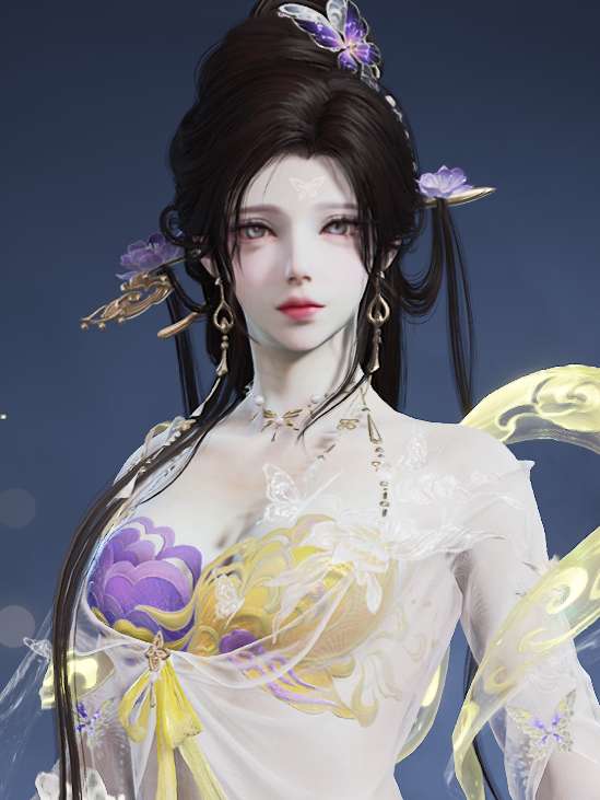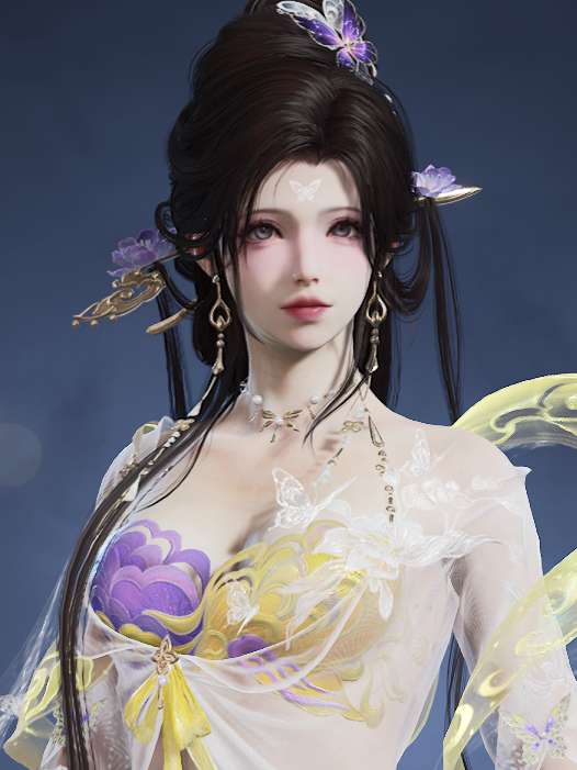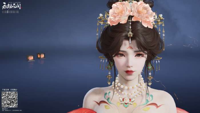 明月也曾为她掩去光华,乱世中,她的舞姿亦是最致命的锋刃。深邃的双眸温柔似水,脸上浅浅红晕将她白皙的皮肤点缀得恰到好处,额间的蝴蝶面纹也许是少女的小巧思,灵动而优雅。